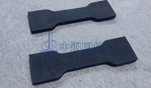 抗拉強度:從準備好的試樣上裁切至少5個規(guī)定尺寸的啞鈴型試樣,將試樣放在標準環(huán)境下進行狀態(tài)調(diào)節(jié)不少于24h。在試樣上標明標距,并用合適量具測量兩標距間試樣尺寸。將試樣置于拉伸裝置中,使試樣縱軸與上、下夾具中心連線相重合,使施加在試樣上的力均勻地分布在試樣上。開動試驗機使夾具以一定速度對試樣進行拉伸,直至試樣斷裂,根據(jù)試驗數(shù)值計算其抗拉強度。